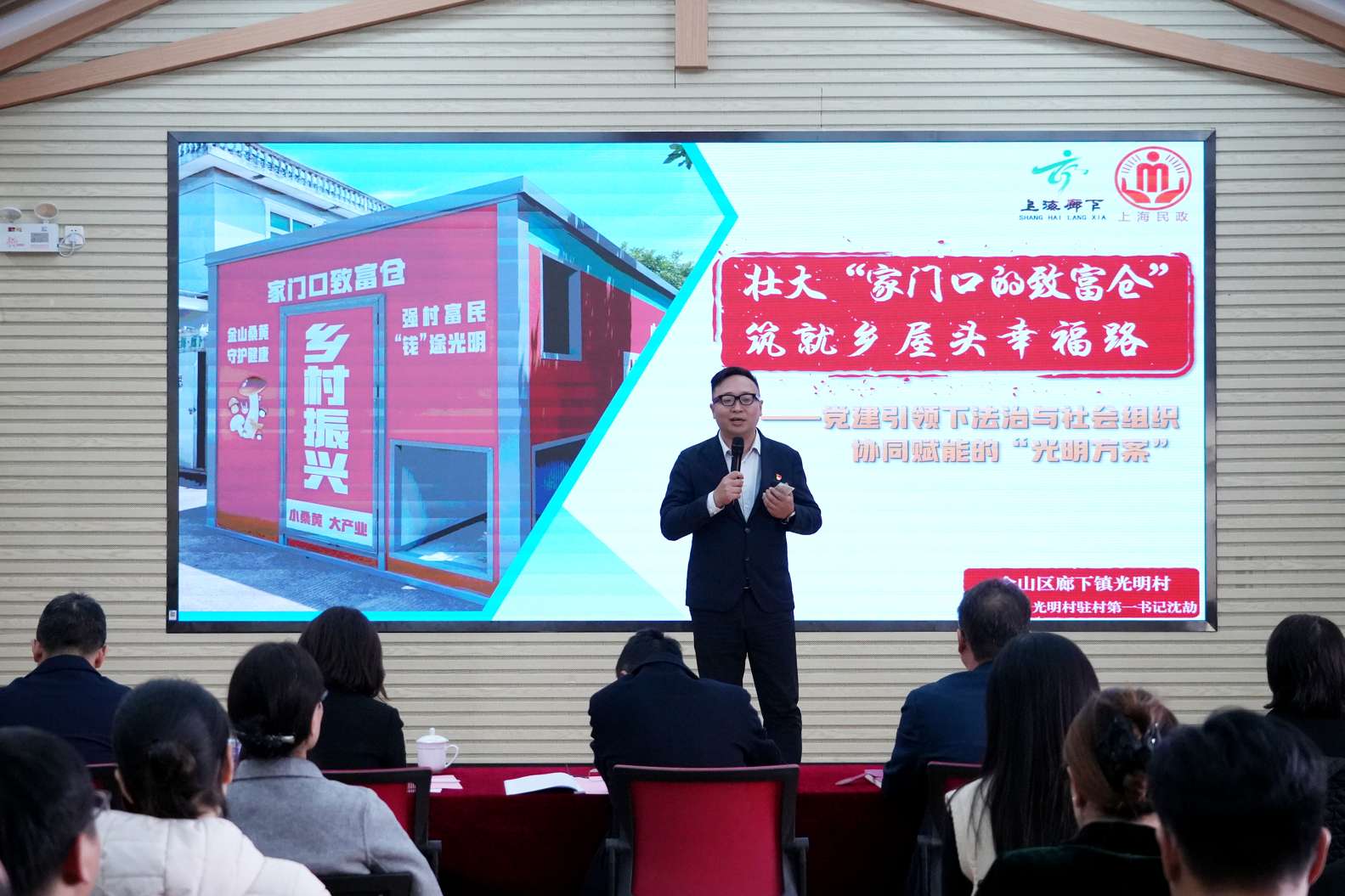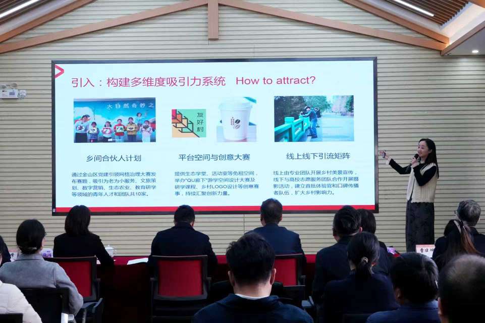 青年力量与精准帮扶为治理赋能。活动现场金山区“梦创工坊”青年创新创业大赛(未来田园赛)暨“Qu廊下”游学空间设计大个获奖项目颁奖,一等奖《“蘑”法游学路》《特冒头的静澜书茶阁》等项目融合乡村资源与创意,为乡村发展添新动能。“驻村帮扶・治理赋能”项目认领环节中,7个村的驻村第一书记逐一认领治理项目,标志着廊下镇精准赋能基层治理迈出新步伐。
